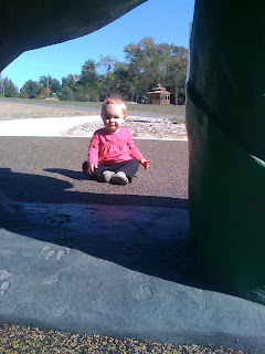 They also had a regular playground - here is Elizabeth trying to climb up the slide, while chanting "up, up, up"